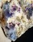 Auf Kalkstein-Matrix sind viele oft klare und deutlich violette Fluorit-Kristalle gewachsen. Sie messen bis ca. 10 mm Kantenlänge und weisen im Innern Kanten zonaren Wachstums auf. Die Fluorite sitzen auf einem Rasen weißer Calcite. Gerwicht: 404 g.