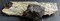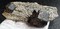 Die Stufe trägt auf mehreren Seiten viele weiße Baryt-Kristalle bis ca. 10 mm sowie transparente Calcite bis ca. 5 mm. Gewicht: 335 g.