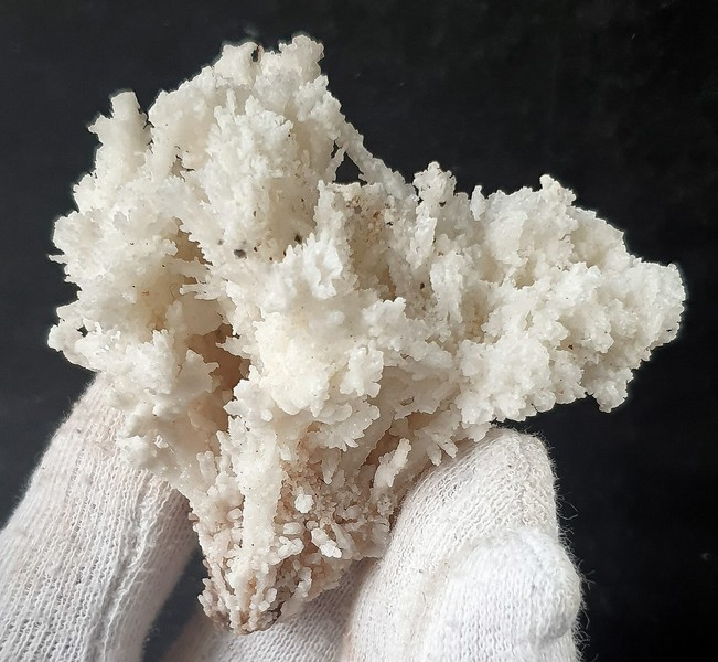 Der schneeweiße Aragonit hat ein "Bäumchen" mit vielen filigranen Verästelungen ausgebildet. Gewicht: 53 g.