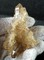 Die Stufe hat mehrere Garben aus transparenten und hochglänzenden Coelestin-Kristallen bis ca. 30 mm ausgebildet. Sie zeigen schöne Endflächen. In der Basis der Stufe ist gelber Schwefel eingewachsen. Die Stufe ist in einem Döschen aufgekittet. Gewicht: 61 g.