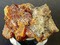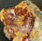 Die Stufe trägt reichlich rötliche und transparente Realgar-Kristalle bis ca. 8 mm. Manche haben Spaltflächen. Teils sind sie schon in gelbliches Auripigment umgewandelt. Gewicht: 54 g.