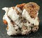 Rundum die Stufe sind sehr viele Hemimorphit-Kristalle bis ca. 8 mm gewachsen. Teils sind sie mit braunem Limonit überzogen, teils zeigen sie eine transparente weiße Farbe und hohen Glanz. Gewicht: 273 g.