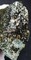 G2-C-13b: Auf einer Seite sitzen hochglänzende Magnetit-Kristalle bis ca. 6 mm Durchmesser. Diese sind als seltene Rhombendodekaeder ausgebildet und zeigen teils eine blaue Anlauffarbe. Dazu gehören viele hellgrüne Sphene bis ca. 2 mm sowie etwas Adular sowie winzige Albite und Chlorit. Größe: ca. 40 x 35 x 35 mm / Gewicht: 48 g / 65,00 €