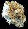 G3-B-1e: Auf zwei Seiten viele schneeweiße Perikline bis ca. 14 mm / dazu viele transparente Calcite bis ca. 15 mm / etliche angelöste und teils limonitisierte Aggregate von Siderit / wenige Bergkristalle / Größe: ca. 80 x 60 x 45 mm / Gewicht: 160 g / 18,00 €