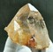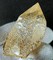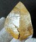 Der Bergkristall ist zur Spitze recht klar und durch Eisenhydroxid-Belag hellgelb gefärbt. Es gibt kleine Absplitterungen und eine wieder angewachsene ehemalige Absplitterung. Gewicht: 69 g.
