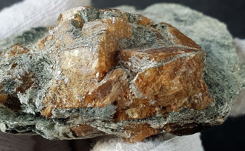 G4-C-17b: Mattglänzende Hessonit-Kristalle bis ca. 2 mm / etwas Epidot und Muskowit / Größe: ca. 115 x 50 x 50 mm / Gewicht: 354 g / 34,00 €