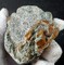 In Kavernen des Gneises gibt es an mehreren Stellen viele nadelige Aquamarin, bzw. Beryll-Kristalle. Diese sind teils farblos, teils teigen sie ein helles Lichtblau und messen bis ca. 12 mm. Dazu gehören über die Stufe verteilt Muskowit-Kristalle und in einer Partie reichlich weiße Laumontit bis ca. 3 mm. Gewicht: 416 g.
