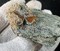 G4-C-4b: Die Stufe trägt einen größeren Calcit-Rhomboeder von ca. 65 x 60 x 30 mm. Dieser ist transparent, zeigt matten Glanz und gerundete Kanten. Dazu gehören kleinere Calcite, Muskowit und etwas Adular. Größe: ca. 100 x 65 x 65 mm Gewicht:480 g / 25,00 €