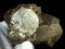 Von scharfkantigen Adularen umschlossen sitzt zentral eine weiß-matte Baryt-"Scheibe" von ca. 32 mm Durchmesser. Die weißen Adular-Kristalle messen bis ca. 25 mm, sind teils kettenartig reihenverwachsen und teils etwas mit Chlorit bedeckt. Gewicht: 50 g.