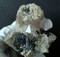 G5-B-11a: An Bergkristall (ca bis 25 mm) sitzt ein dicktafeliges Hämatit-Aggregat von ca. 30 x 15 x 10 mm / schöne Endflächen, eine Kante abgebrochen / mehrere kleinere Hämatite an anderen Stellen / dazu Calcit-Skalenoeder bis 4 mm / Größe der Stufe: ca. 60 x 45 x 25 mm / 63 g / 30,00 €