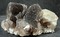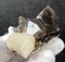 G5-C-11c: Mehrspitziger Rauchquarz-Doppelender / Einige Aggregate aus scharfkantigen, transparenten Adularen bis ca. 12 mm / Größe: ca. 55 x 35 x 30 mm / Gewicht: 50 g / 16,00 €