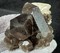 Diese größere Stufe trägt einige teils recht dunkel gefärbte Rauchquarze bis ca. 40 mm. Sie zeigen guten Glanz und haben manchmal im Innern napfähnliche Aufplatzungen, die irrisierend glänzen. Die Quarze tragen teils eine helle Kruste winziger Kristalle (eventuell Prehnit). Einige Rauchquarze haben verheilte Flächen. Gewicht: 859 g.