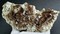 Die Stufe trägt sehr viele transparente bis klare Sphen (Titanit) - Kristalle bis ca. 8 mm. Diese sind scharfkantige Einkristalle von hohem Glanz und brauner Farbe. Dazu gehören wenig Periklin, Adular und Calcit sowie Chlorit. Gewicht: 282 g