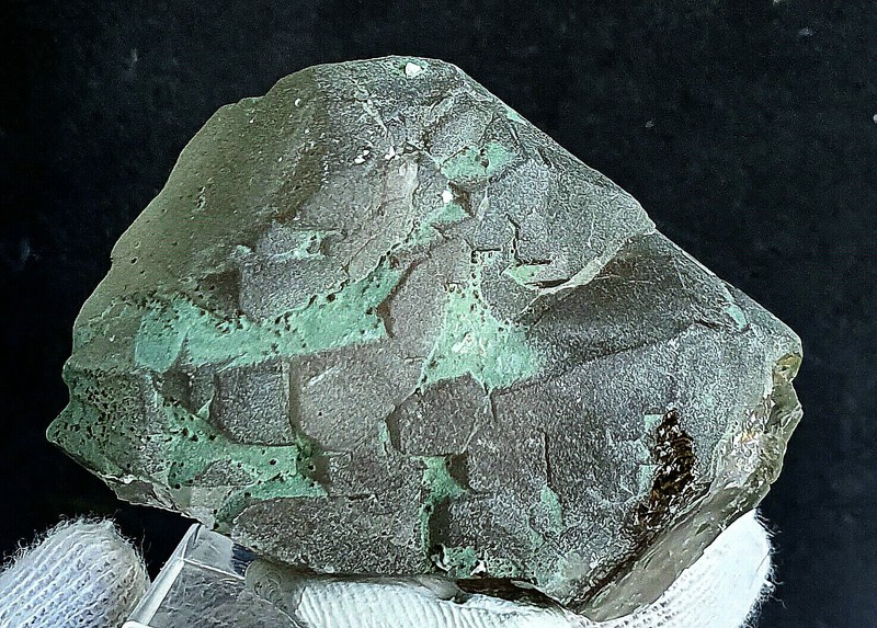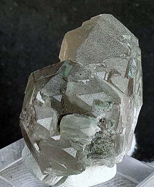 G8-A-19c: Transparente Gwindel-Stufe mit Chlorit / Gwindel ca. 50 mm / verheilte Stellen / weiße Feldspat-Aufwachsungen / Größe: ca. 65 x 35 x 25 mm / Gewicht: 58 g / 40,00 €