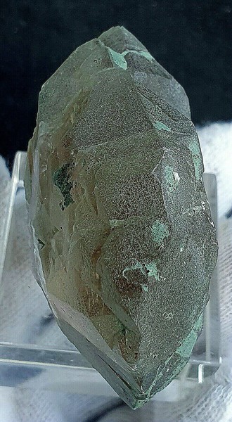 Das Gwindel ist recht klar, zeigt auf allen Seiten Kristallflächen und ist etwas mit Chlorit "bestäubt". Es ist deutlich gelängt gedreht und misst ca. 60 x 50 x 20 mm. Dazu gehören mehrere Bergkristalle bis ca. 45 mm. Gewicht: 156 g.
