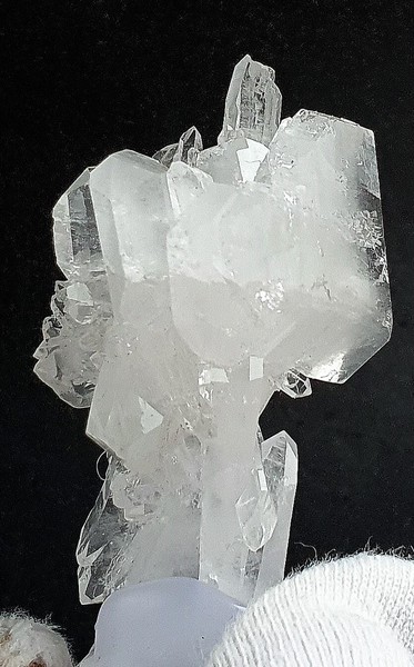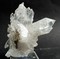 G9-15b: Die Stufe besteht aus einigen weißen bis transparenten flachen Bergkristallen. Diese zeigen hohen Glanz und messen bis ca. 35 mm. Größe: 65 x 50 x 40 mm / Gewicht: 97 g / 20,00 €