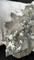 Diese Stufe ist auf mehreren Seiten mit oft recht klaren Bergkristallen bis ca. 40 mm besetzt. Vor allem eine Seite ist mit angelöstem transparentem Calcit bewachsen. Gewicht mit Sockel: 132 g.