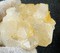 G9-15c: Auf Matrix sind viele transparente bis milchig-weiße Bergkristalle gewachsen. Teils sind sie als flache Fadenquarze ausgebildet und messen bis ca. 30 mm. Meist zeigen sie durch leichten Eisenhydroxid-Belag eine hellgelbe Farbe. Größe: 90 x 70 x 45 mm / Gewicht: 150 g / 24,00 €